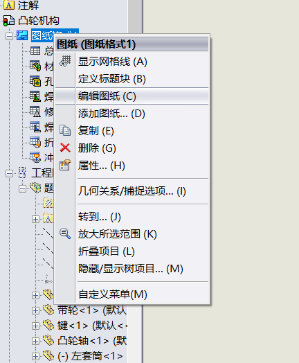 编辑工程图标题栏