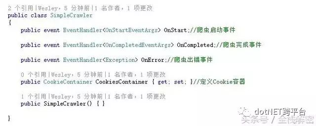 首先我们用Visual Studio 2015创建一个控制台程序,定义一个简单的SimpleCrawler类,里面只包含几个简单的事件: