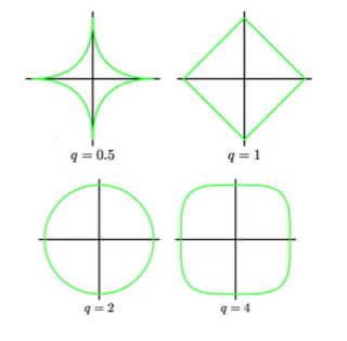 当q = 1 :LASSO Regression ;q = 2:岭回归(Ridge Regression)。