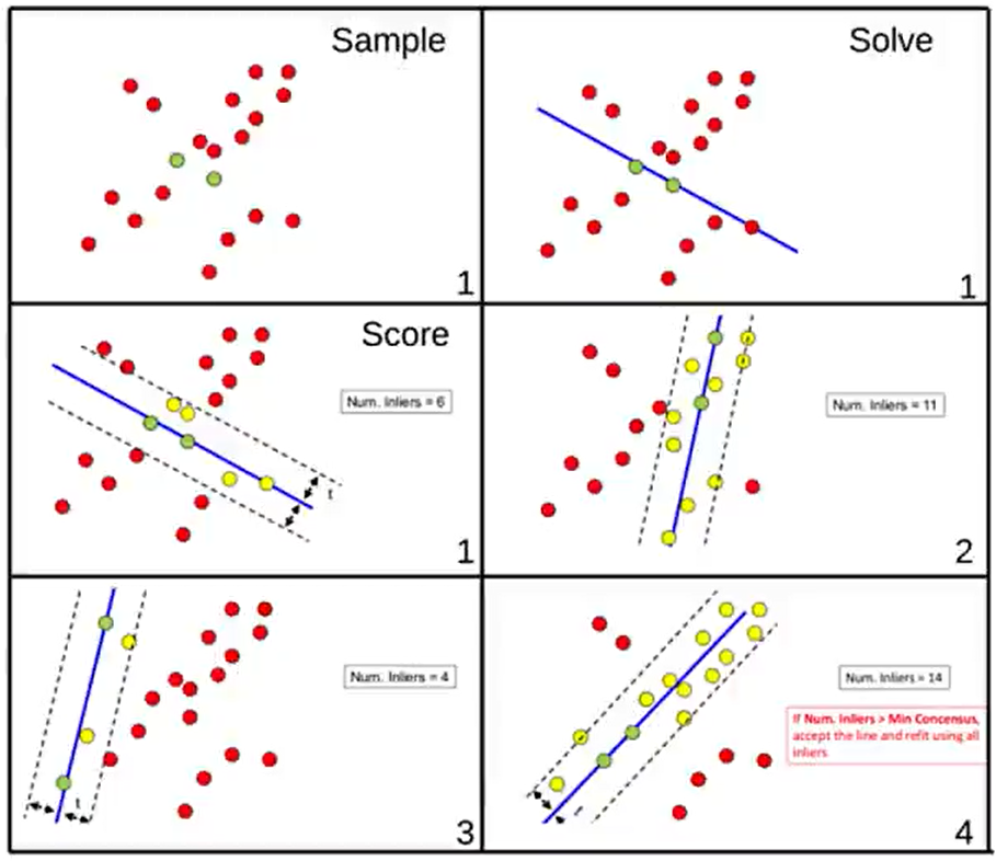 3)利用模型计算其他样本的残差,若某个样本残差小于预先设置的阈值t。则将其加入内点,将内点中的样本量扩充;