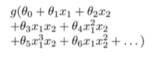 g refers to sigmoid function ,if it includes enough polynomial terms ,you can get a hypotheses that separates the positive and negative examples .