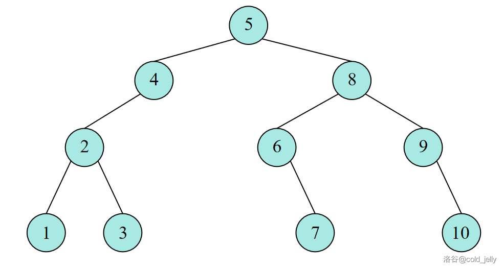 - 树上的任何一个节点都有一个权值,该节点权值小于其左子树中任意节点的权值,大于其右子树中任意节点的权值。(不考虑相等权值)