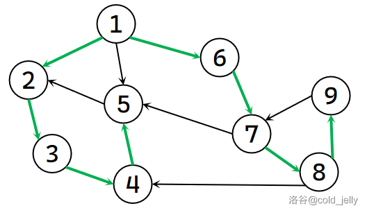 另外,如果一个节点是某个强连通分量在搜索树中遇到的第一个节点,那么该节点被称为该强连通分量的根。