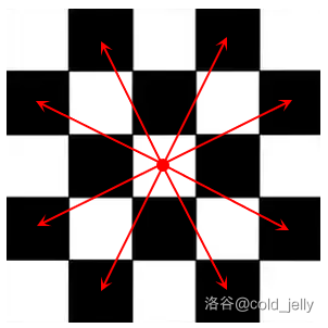 我们发现在国际象棋棋盘中,骑士所走的日字形的两对角格的颜色一定不同: