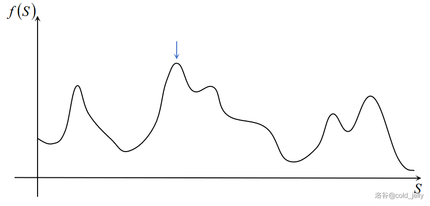 很明显其不一定是一个单峰函数,因此爬山算法不可行,而如果我们不概率接受看起来更劣的状态,那么就会拘泥于一个山峰而不能看到更远的更高的山峰。