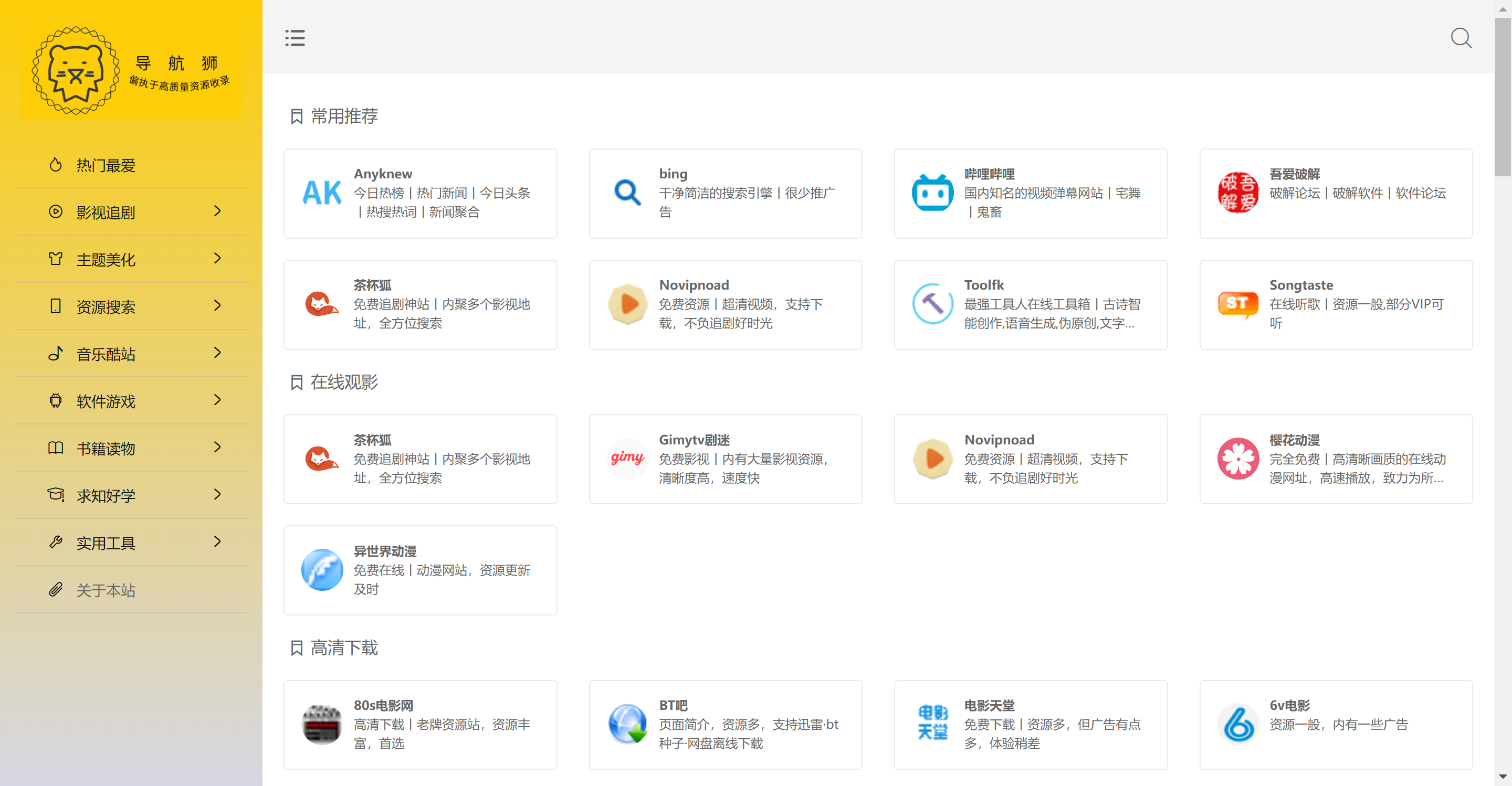 导航狮是一个书签管理器,平时的看见很多有意识的网页,加入书签后,经常会忘记是什么,这就是这个导航网页开发的初衷。