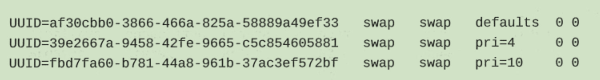 要设置优先级,请在/etc/fstab中使用pri选项。内核会首先使用优先级(数字越大越高)的交换空间。默认优先级为-2.