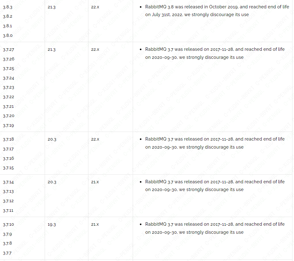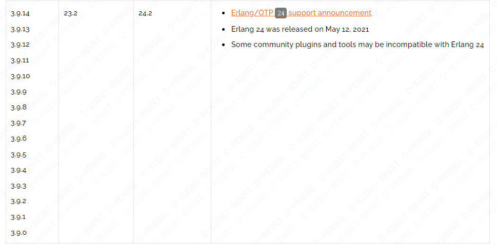 | rabbitmq | erlang最低版本 | erlang最高版本 |