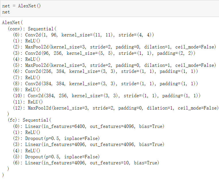 import time import torch from torch import nn,optim import torchvision import sys sys.path.append('./Dive-into-DL-PyTorch-master/Dive-into-DL-PyTorch-master/code/') import d2lzh_pytorch as d2l device = torch.device('cuda' if torch.cuda.is_available() else 'cpu') class AlexNet(nn.Module): def __init__(self): super(AlexNet,self).__init__() # in_channels, out_channels, kernel_size, stride, padding self.conv = nn.Sequential(nn.Conv2d(1,96,11,4), nn.ReLU(), # kernel_size,stride nn.MaxPool2d(3,2), # 减小卷积窗口,使用填充为2来使得输入与输出的高和宽一致,且增大输出通道数 nn.Conv2d(96,256,5,1,2), nn.ReLU(), nn.MaxPool2d(3,2), # 连续3个卷积层,且使用更小的卷积窗口。除了最后的卷积层外,进一步增大了输出通道数。 # 前两个卷积层后不使用池化层来减小输入的高和宽 nn.Conv2d(256,384,3,1,1), nn.ReLU(), nn.Conv2d(384,384,3,1,1), nn.ReLU(), nn.Conv2d(384,256,3,1,1), nn.ReLU(), nn.MaxPool2d(3,2) ) # 这里全连接层的输出个数比LeNet中的大数倍。使用丢弃层来缓解过拟合 self.fc = nn.Sequential(nn.Linear(256*5*5,4096), nn.ReLU(), nn.Dropout(0.5), nn.Linear(4096,4096), nn.ReLU(), nn.Dropout(0.5), # 输出层。由于这里使用Fashion-MNIST,所以用类别数为10,而非论文中的1000 nn.Linear(4096, 10), ) def forward(self,img): feature = self.conv(img) # 特征提取 output = self.fc(feature.view(img.shape[0],-1)) return output