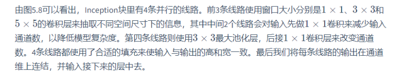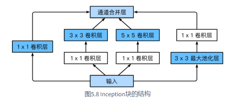 Inception块中可以自定义的超参数是每个层的输出通道数,我们以此来控制模型复杂度