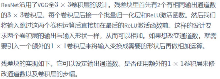 import time import torch from torch import nn,optim import sys sys.path.append("./Dive-into-DL-PyTorch-master/Dive-into-DL-PyTorch-master/code/") import d2lzh_pytorch as d2l device = torch.device('cuda' if torch.cuda.is_available() else 'cpu') import torch.nn.functional as F class Residual(nn.Module): def __init__(self, in_channels, out_channels, use_1x1conv=False, stride=1): super(Residual, self).__init__() self.conv1 = nn.Conv2d(in_channels, out_channels, kernel_size=3, padding=1, stride=stride) self.conv2 = nn.Conv2d(out_channels, out_channels, kernel_size=3, padding=1) if use_1x1conv: self.conv3 = nn.Conv2d(in_channels, out_channels, kernel_size=1, stride=stride) else: self.conv3 = None self.bn1 = nn.BatchNorm2d(out_channels) self.bn2 = nn.BatchNorm2d(out_channels) def forward(self, X): Y = F.relu(self.bn1(self.conv1(X))) Y = self.bn2(self.conv2(Y)) if self.conv3: X = self.conv3(X) return F.relu(Y + X)