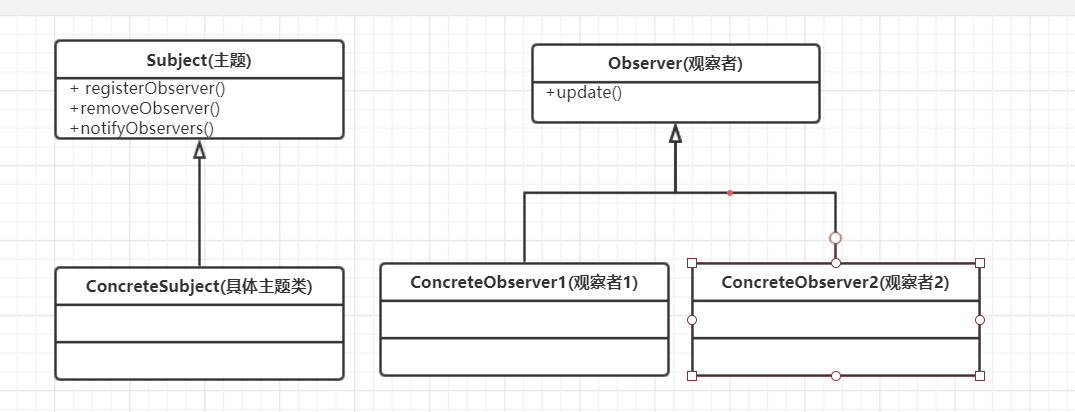 - 观察者模式所做的工作其实就是在解除耦合,解除主题对象和具体观察者之间的耦合性,当观察者发生发生变化时不会影响的其他的变化。