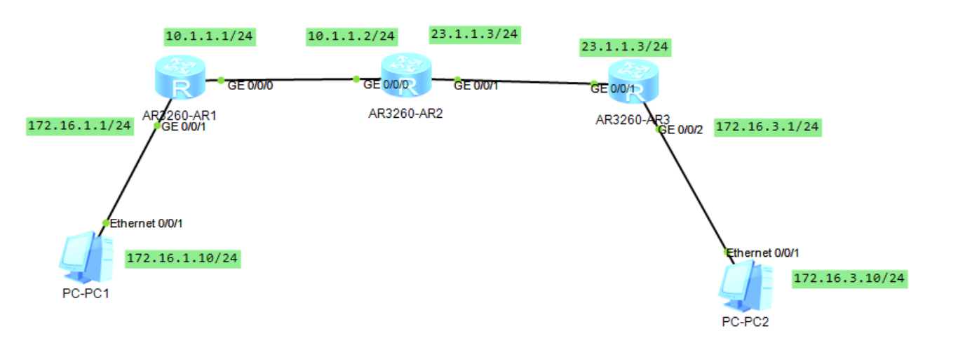 [Huawei-GigabitEthernet0/0/1]ip address 172.16.1.1 24