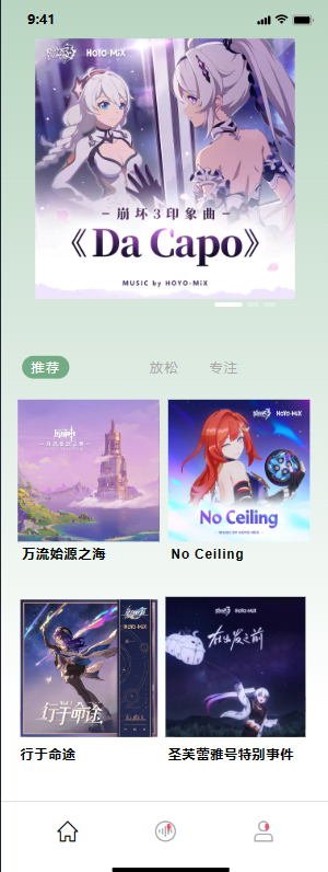 说明:首页进行音乐推送,简洁明了。