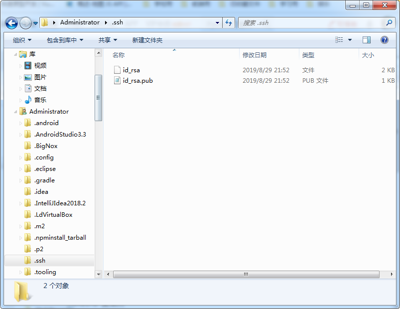 有 id_rsa 和 id_rsa.pub 这两个文件,id_rsa 是私钥(不可轻易给人),id_rsa.pub 是公钥。