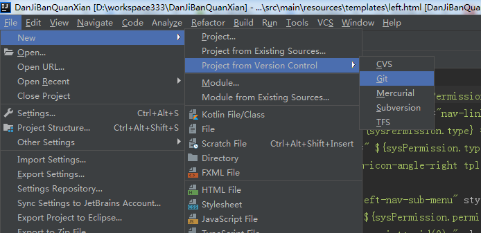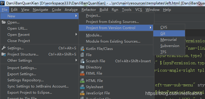 进入IDEA编辑器。如图选择File--New--Project from Version Control--Git