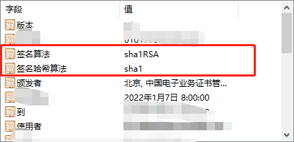 这个是7月前申请的ukey签名算法采用sha1