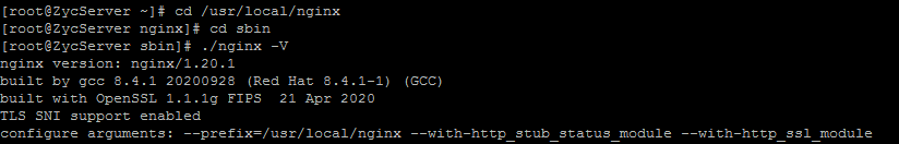 cd nginx-1.20.1 ./configure --prefix=/usr/local/nginx --with-http_stub_status_module --with-http_ssl_module --with-http_v2_module