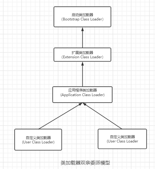 双亲委派模型工作过程:如果一个类加载器收到了类加载的请求,它首先不会自己去尝试加载这个类,而是把这个请求委派给父类加载器去完成,每一个层次的类加载器都是如此,因此所有的加载请求最终都应该传送到最顶层的启动类加载器中,只有当父加载器反馈自己无法完成这个加载请求(它的搜索范围中没有找到所需的类)时,子加载器才会尝试自己去完成加载。