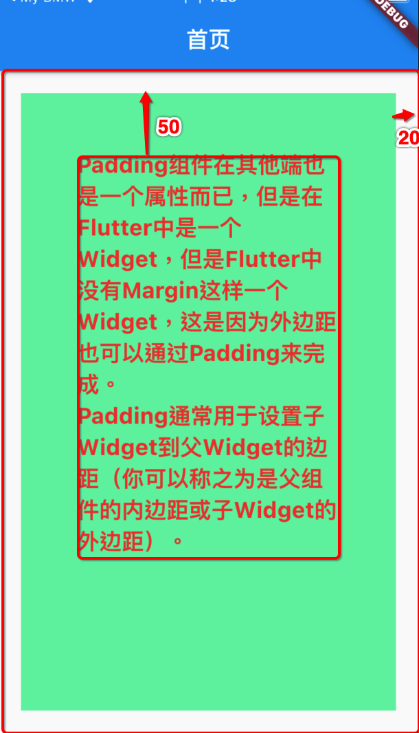 padding: EdgeInsets.all(50), // 子组件的外边距,父组件的内边距 设置子内边距为50