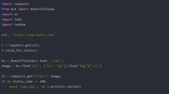 image = bs.find(“div”, {“id”: “lg”}).find(“img”)[“src”]