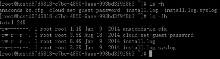 实验步骤一:Linux文件列表命令 :ls 可搭配 -a ,-A, -D, -h, -l