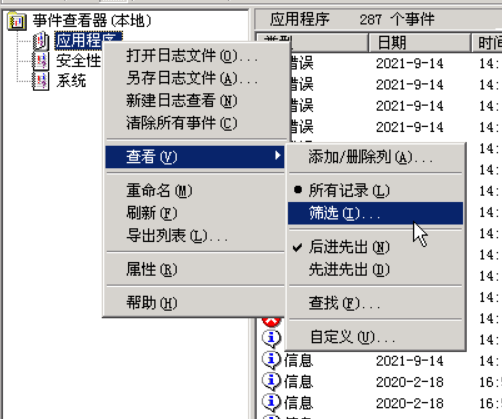 1)开始 - 控制面板 - 管理工具 - 事件查看器