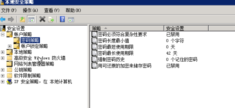 开始->运行->secpol.msc (本地安全策略)->安全设置->账户策略->密码策略