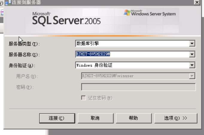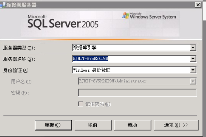 登录后,点击左下角的开始-所有程序-Microsoft SQL Server 2005-SQL Server Management Studio 进入SQL Server Management Studio。 身份验证选择 Windows 身份验证。