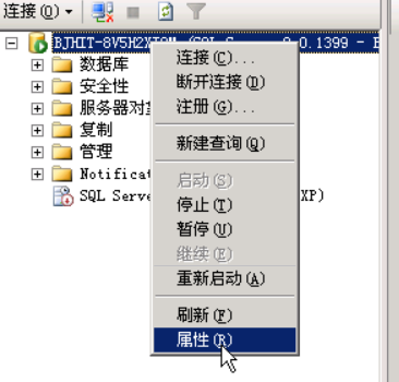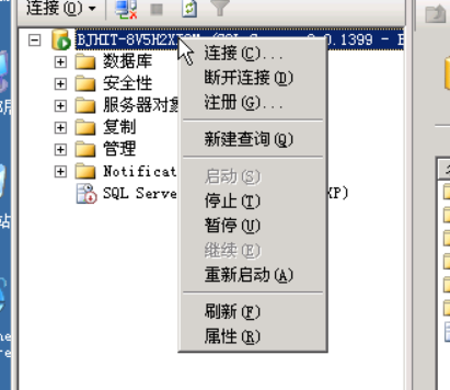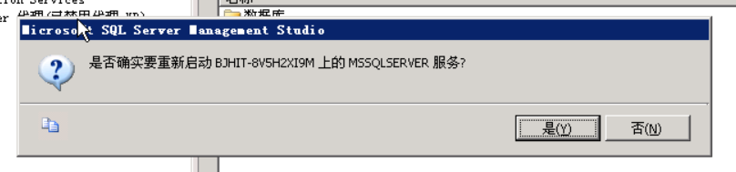 8)在“对象资源管理器”中,右击服务器,然后单击“重新启动”。 选择是