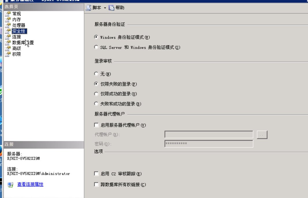 5)使用SQL Server Management Studio管理SQL Server身份验证的登录帐号。 注销winuser,切换到administrator用户(不会的可参考之前从administrator切换到winuser的步骤)。