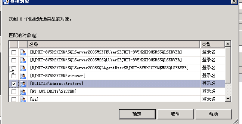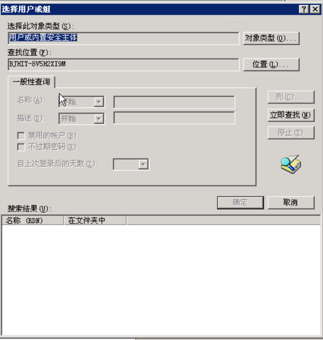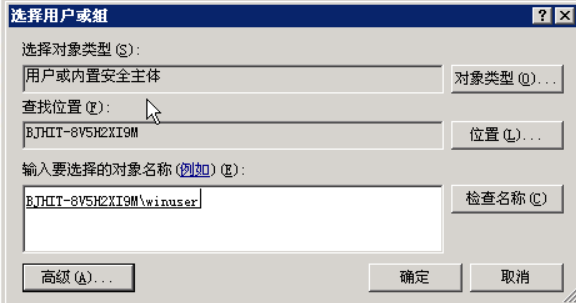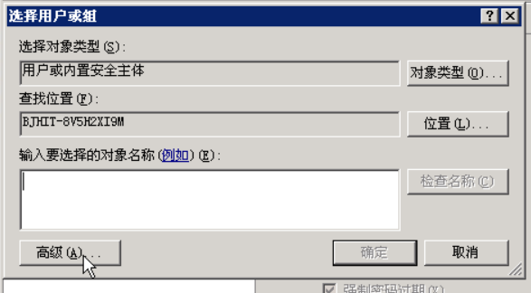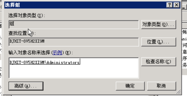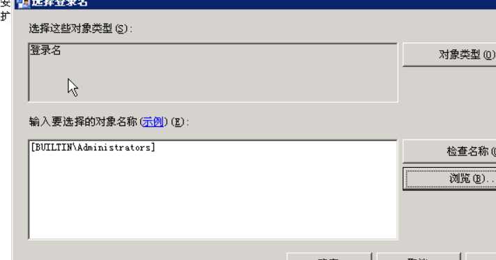 弹出查找对象对话框,在里面选择一个用户,选择administrators。