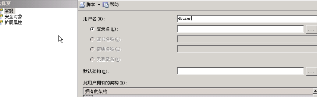 打开SQL Server登录属性对话框。在“常规”选项卡中,单击“名称”输入框右侧的按钮。