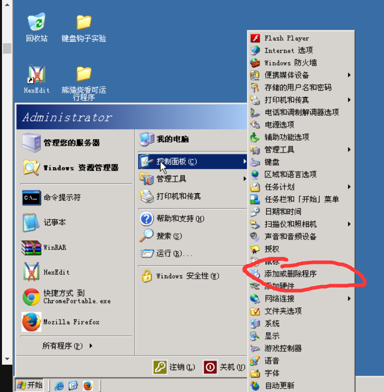 依次点击:“开始”->>“控制面板”->>“添加或删除程序”,以打开添加或删除程序对话框: