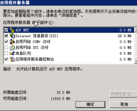 双击“应用程序服务器”,选中“ASP.NET”与“Internet信息服务(IIS)”,如下图: