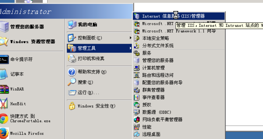 安装完成后会发现有管理工具中多了“Internet信息服务(IIS)”,找到并打开: