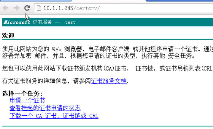 打开浏览器输入 http://10.1.1.245/certsrv/ 可以浏览证书服务器
