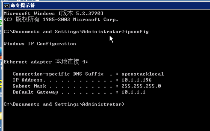 远程桌面方式登录到CA服务器,在CMD下查看本机IP地址