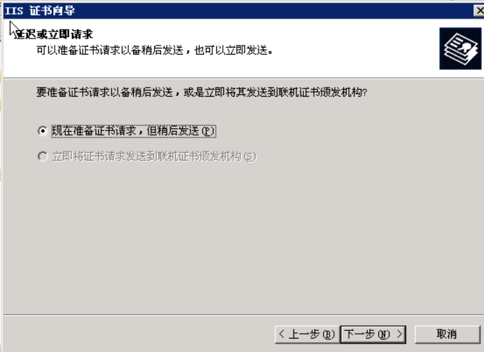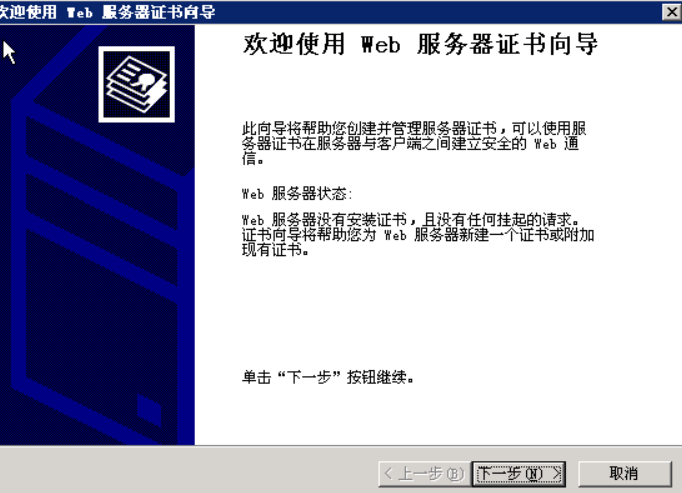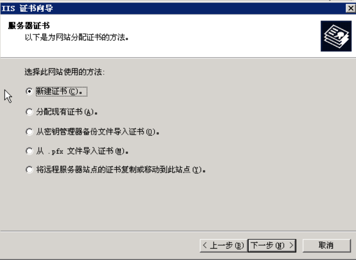 出现如下对话框,保持默认选项“新建证书”不动,继续下一步: