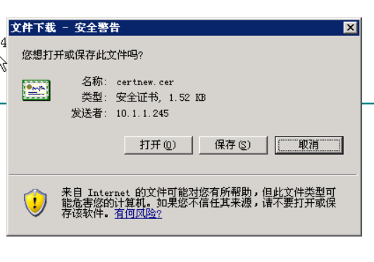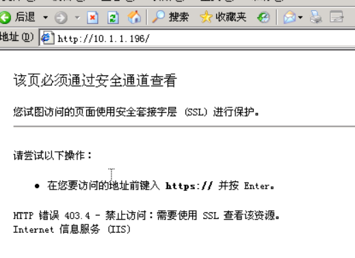 输入https://10.1.1.196 (按照实际情况),会出现一个证书安全问题的确认,单击“是”,进行浏览: