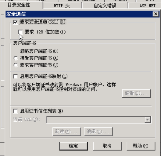 在“默认网站属性”中选择“目录安全性”标签,点击“服务器证书”: