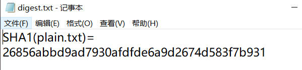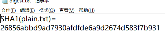 计算plain.txt的哈希值,输出到文件digest.txt。