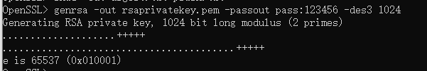 1)创建1024位的RSA私钥,写入文件rsaprivatekey.pem,同时将私钥用3DES加密,并设置密码。