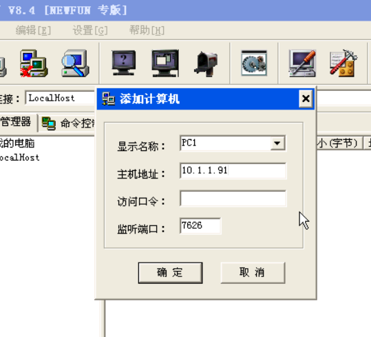 4)显示名称,填入显示在主界面的名称(PC1),即PC1的ip地址