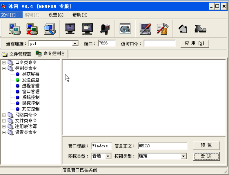 点击“命令控制台”,点击“控制类命令”前面的“+”即可显示图所示界面