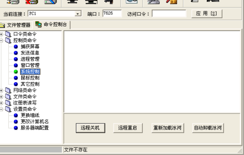 点击“控制类命令”前面的“+”,点击“系统控制”可看到“自动卸载冰河”按钮并点击,在弹出的窗口里面点击