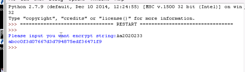 实验步骤一:用任意一种语言,对特定的四位数字进行MD5加密(例如‘Aa2020233’),输出加密后的结果: