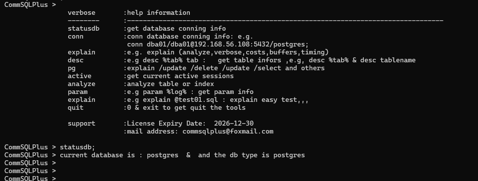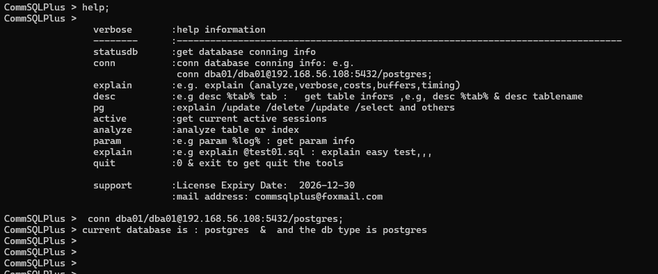 帮助和连接信息(日后支持多种数据库,通用命令管理不同数据库)