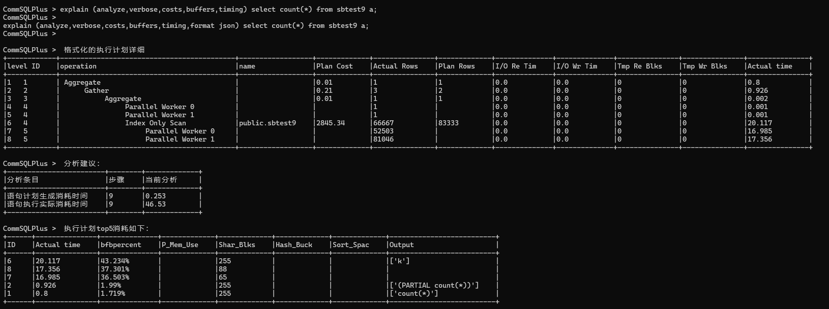 执行计划直接输出