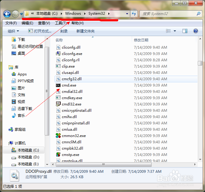 打开图中的路径以,下拉滚动条,你会看到如图所示的cmd.exe
